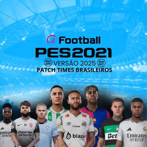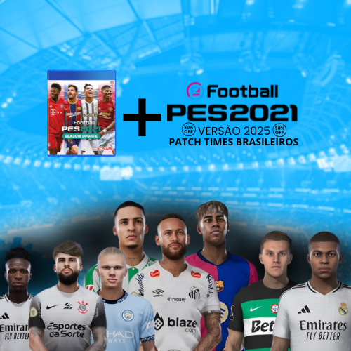 50% OFFO bundle completo com o jogo PES 2021 original + patch com todos os times brasileiros.